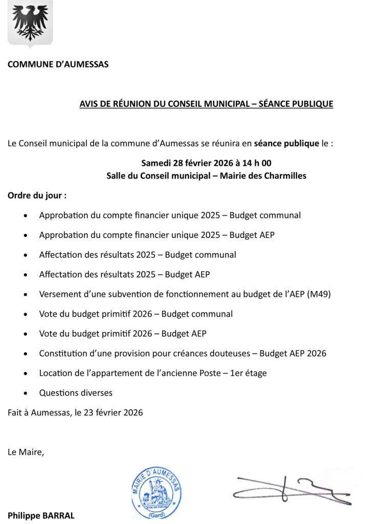 CONSEIL MUNICIPAL – samedi 28 février 2026